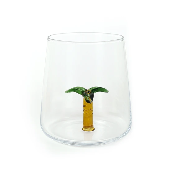 Com uma palmeirinha de vidro no fundo, ele transforma qualquer bebida em um convite ao relaxamento.