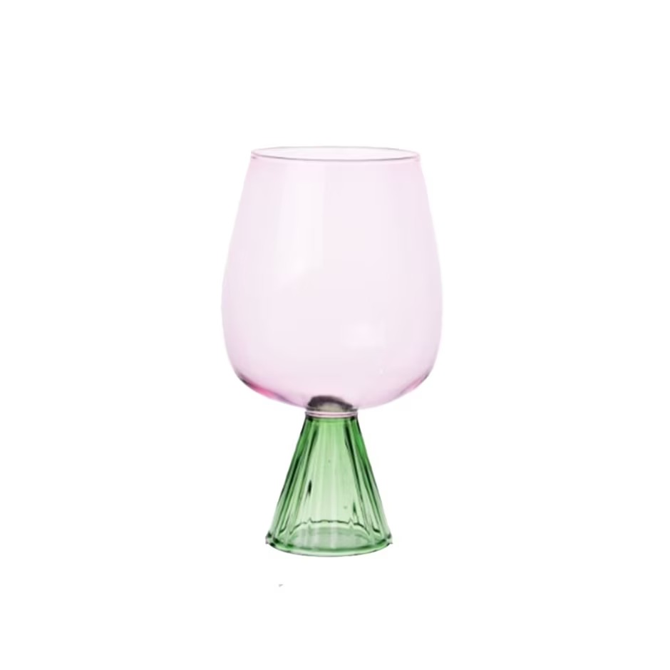 Taça Rosa com base verde; Jogo de 6 unidades; 630 ml