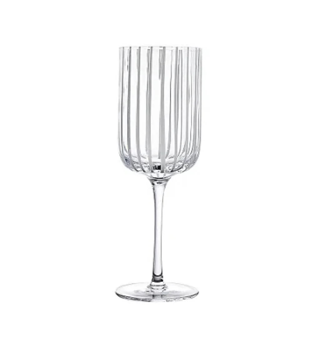 Taça transparente em vidro com listras brancas; 6 unidades